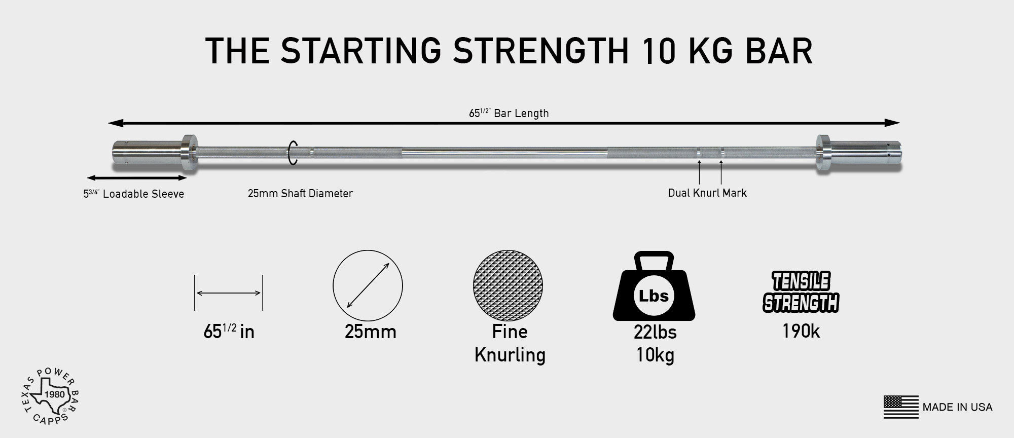 Shop All Texas Gear & Accessories →Bar Weight: 22LB / 10KG